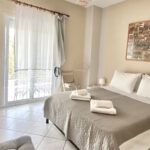 Αpartment on the first floor with two separate rooms and a large balcony overlooking the garden. Suitable for accommodating 4-5 people.